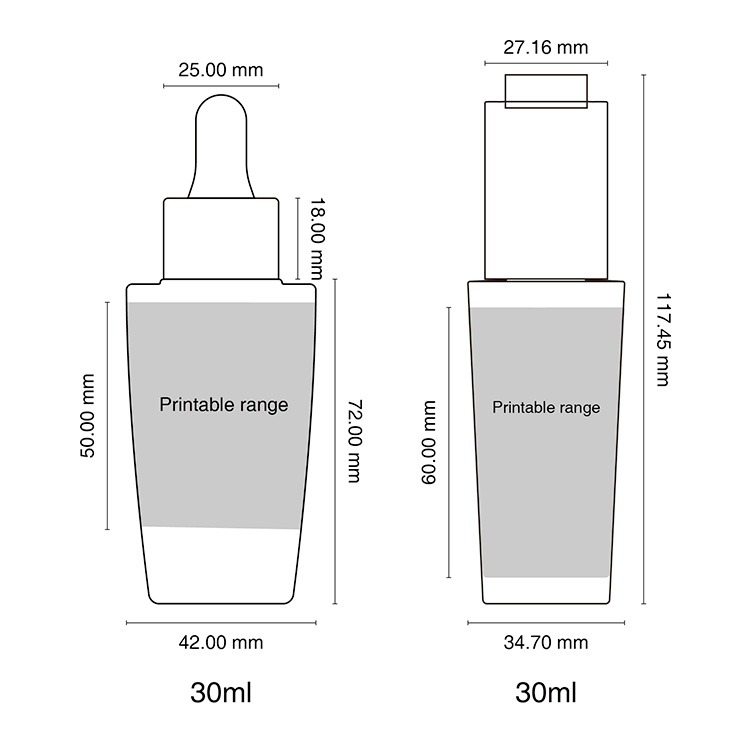 Each dropper bottle is manufactured with advanced molding and coating technology, ensuring durability, leak resistance, and a smooth surface finish. Ideal for high-end skincare and cosmetic brands, it offers a modern and refined look that enhances product presentation on the shelf.