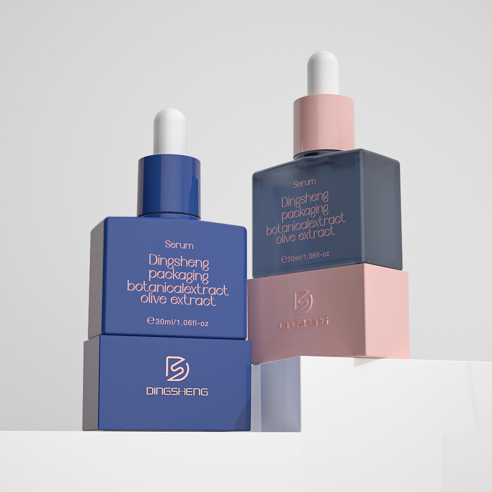 Silk Screen Printingزجاجة قطارة مكعبة الشكل ذات قاعدة سميكة لتغليف مستحضرات التجميل