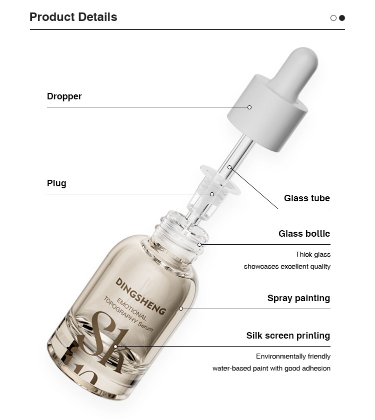 A: This product is available in 30ml and 60ml sizes. It can be paired with droppers, pumps, or aluminum caps depending on your packaging design needs. Dingsheng also supports custom cap colors and electroplated finishes to match your brand aesthetics.