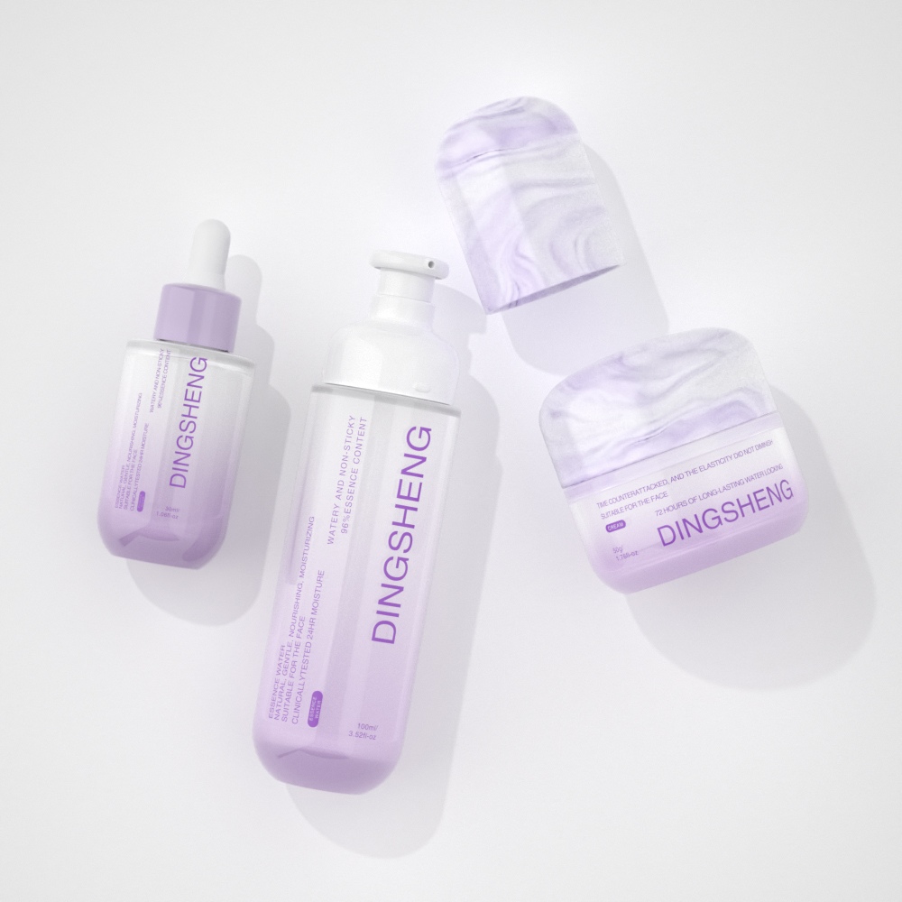 Silk Screen Printing: Uses eco-friendly water-based paint with strong adhesion to display product details and branding (e.g., "DINGSHENG" and skincare claims).
