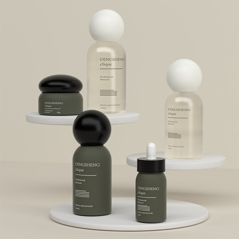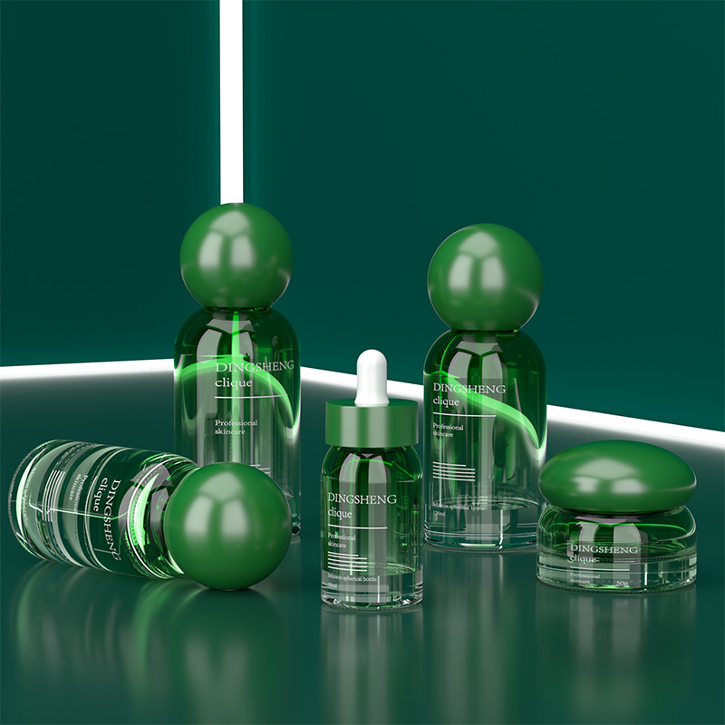 خطوط العناية بالبشرة الاحترافية: تُعد لغة التصميم المتماسكة، التي تتميز باللمسة النهائية الخضراء غير اللامعة والأغطية الكروية، الخيار الأمثل لإطلاق مجموعات موحدة وراقية من منتجات العناية بالبشرة أو مجموعات احترافية من منتجات العناية بالبشرة ذات الجودة العالية التي تضاهي جودة صالونات التجميل.