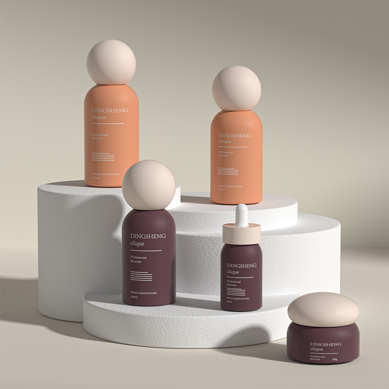 مجموعة فاخرة من زجاجات وأواني مستحضرات التجميل الفارغة ذات الأغطية الكروية
