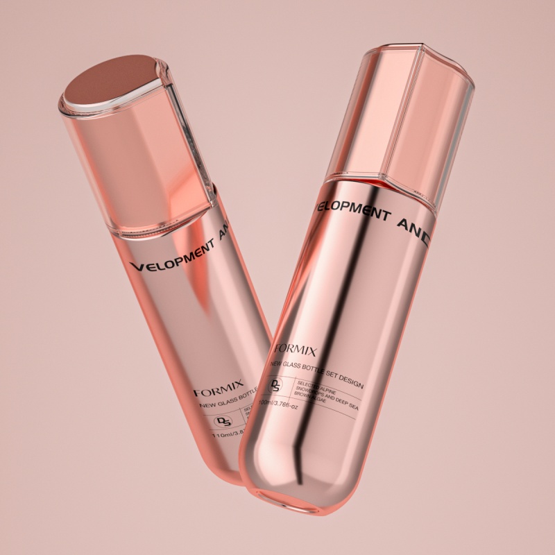 Elegant Rose Gold Finish: Opaque metallic coating for luxury skincare brands.